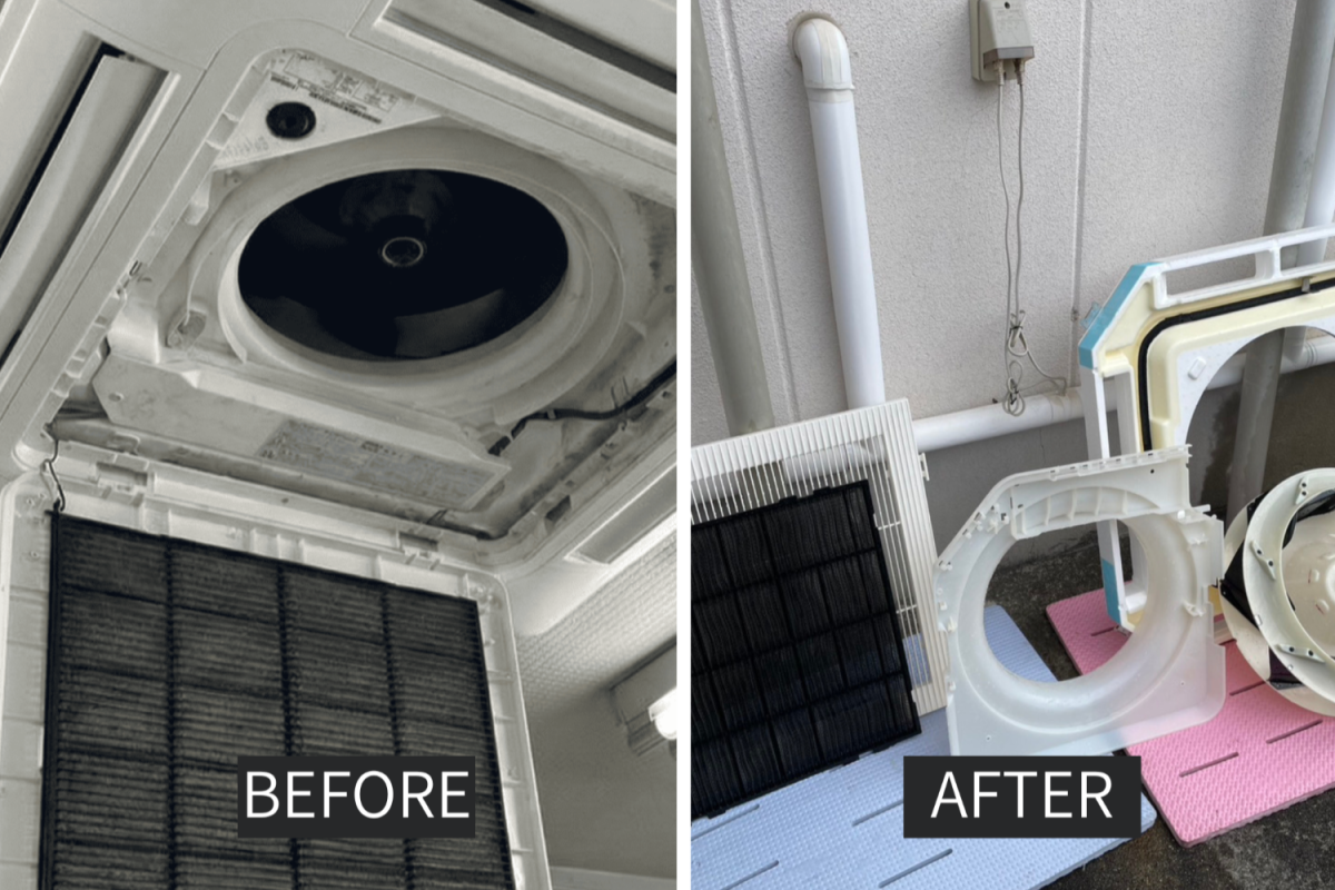 今回のクリーニングでは、外装パネル・フィルター・内部パーツを丁寧に分解洗浄しました。