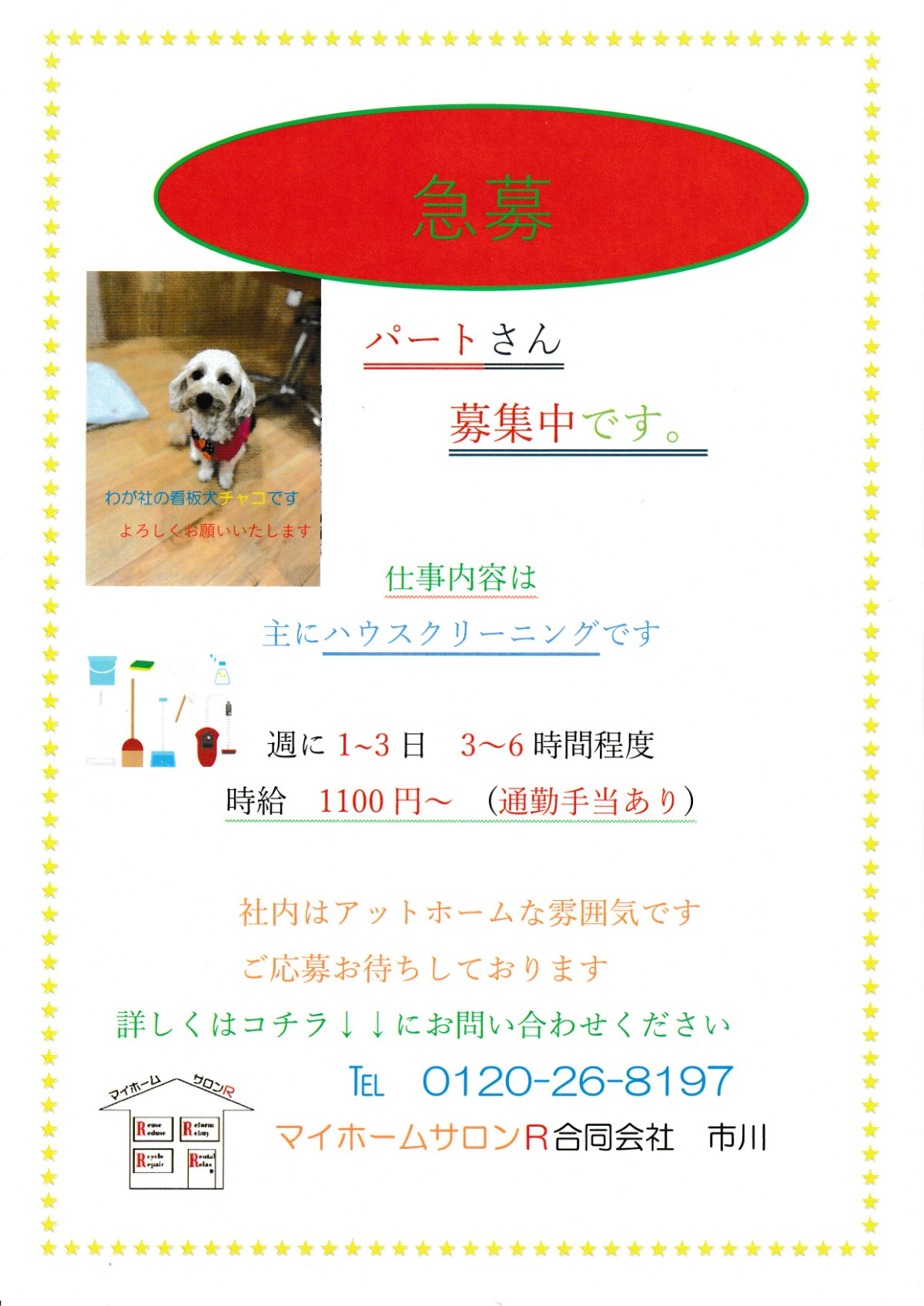 マイホームサロンRでは、現在ハウスクリーニングのパートスタッフを募集しております。